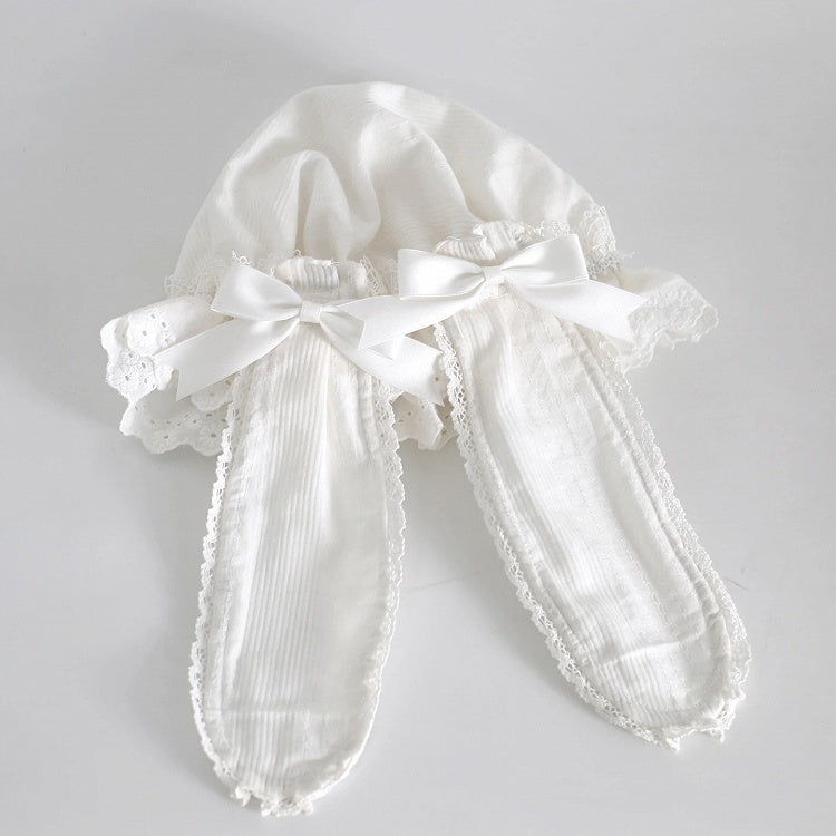 Decorated Lolita Multi-Layer Calf White/Black Bow Trim Lace Socks