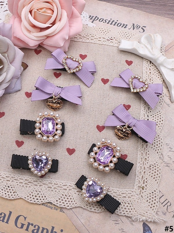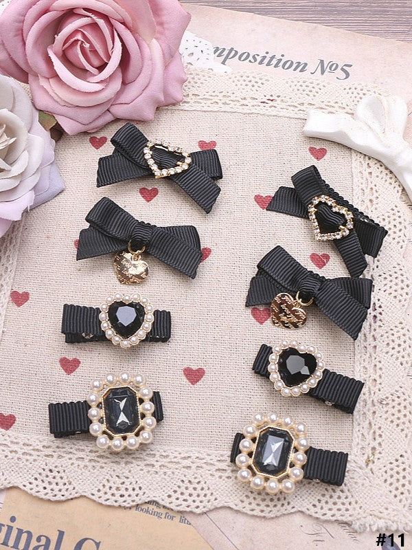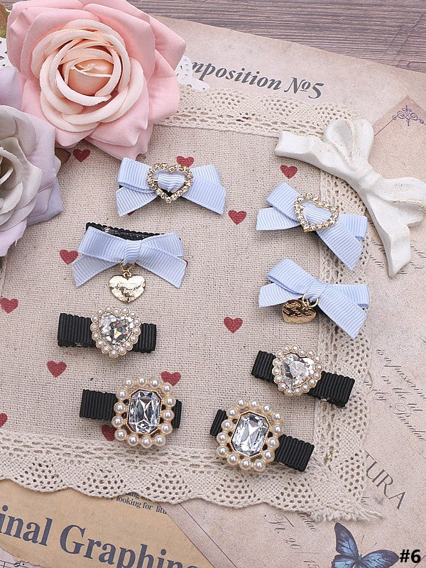 Jirai Kei 14 Color Options Heart Rhinestone Pearl Hairclips Set