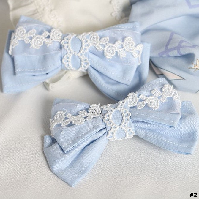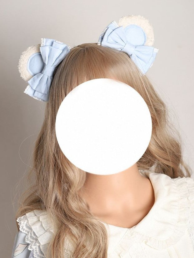 2 Options White & Light Blue Sweet Lolita Bear Ear/Bowknot Hairclip
