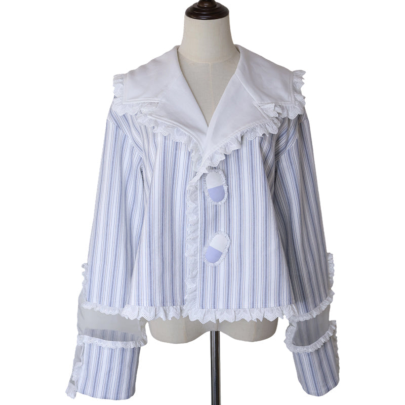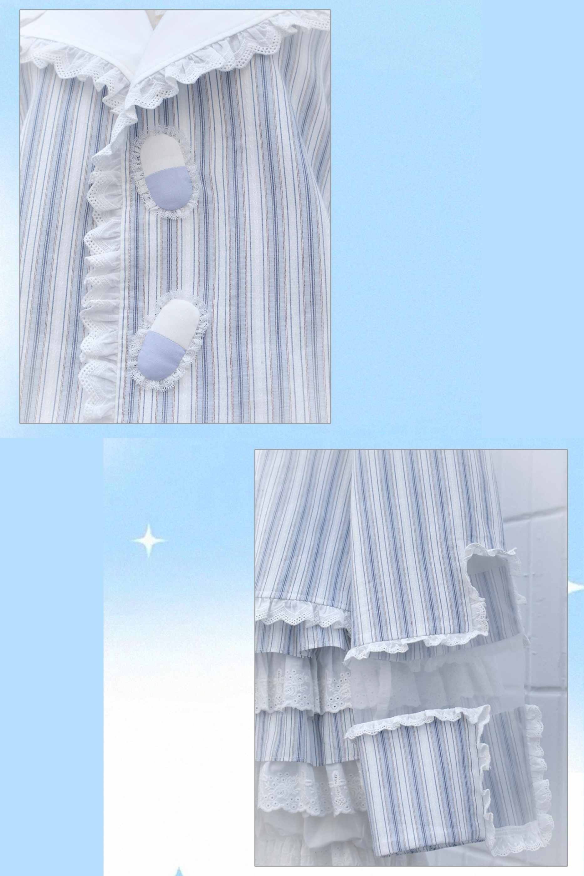 ❤︎ Deadline for reservation: June 21 Tenshi Kaiwai👼】Medical Night Stripe Subculture Tops + Shorts + Hat + Eye Mask Hairband❤︎ ⚠️It may take up to 4 months for delivery due to the popularity of this product.