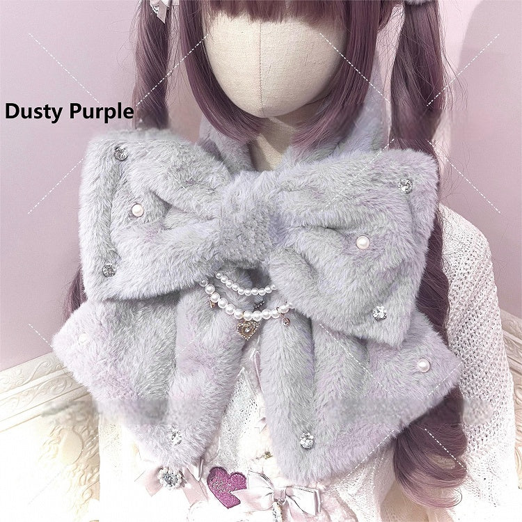 3 Colors Plush Bow Scarf with Rhinestone & Beads Chain Accents