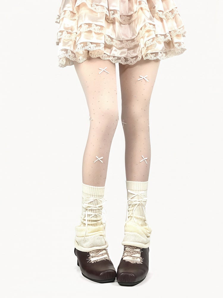 3 Rhinestone Bowknot Tights Decorated Colors