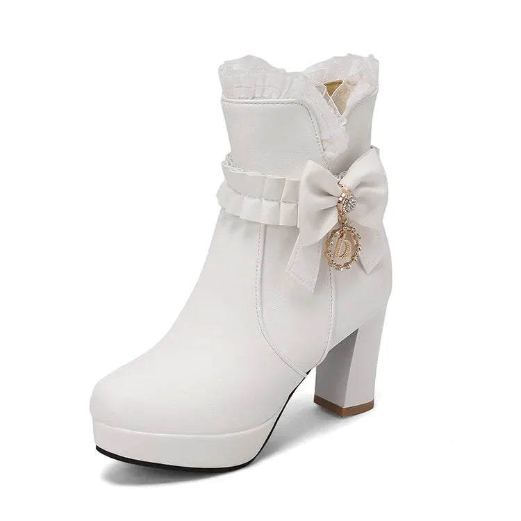 31-43 Cute Sweet Bow Knot Lolita Boots Pink Ruffles Boots