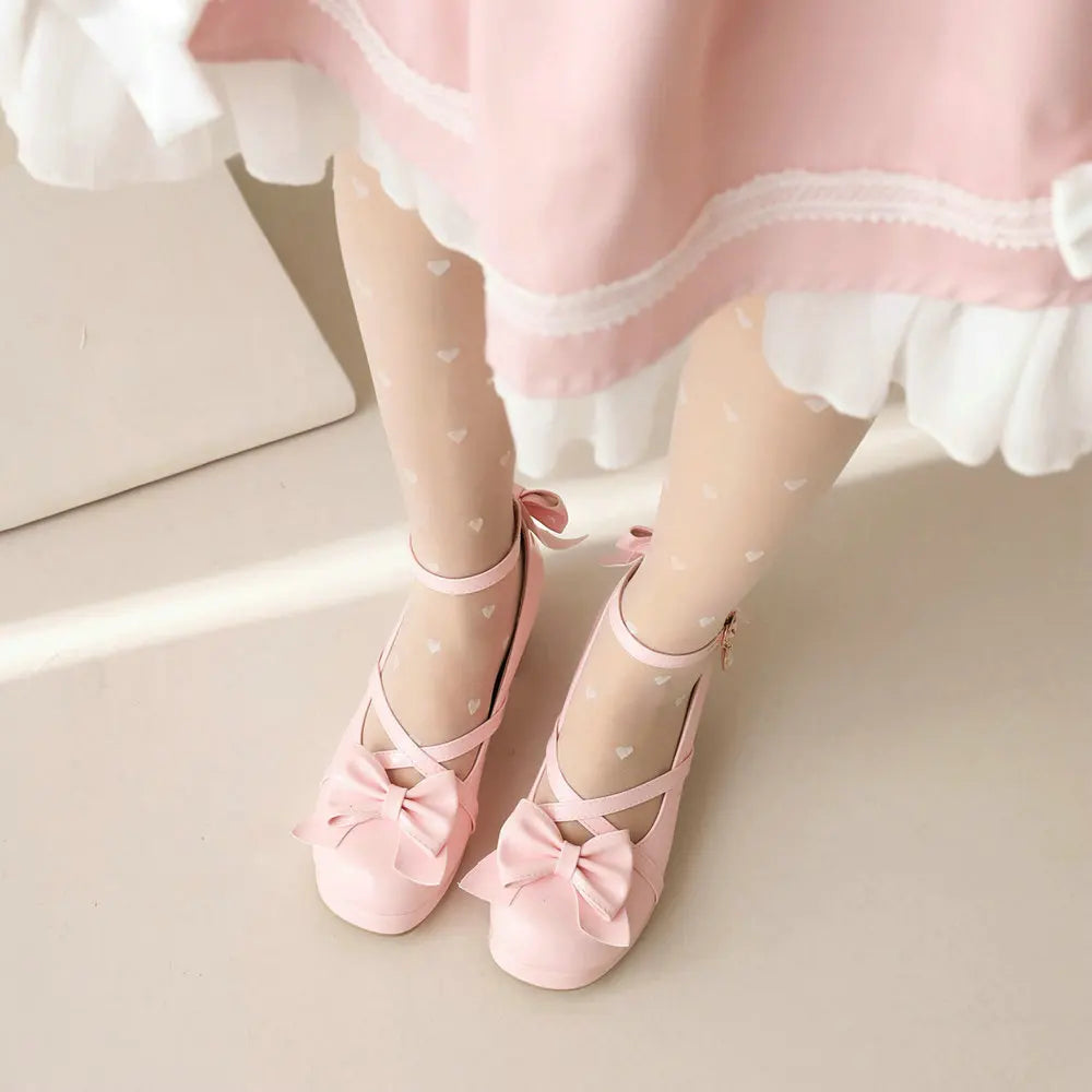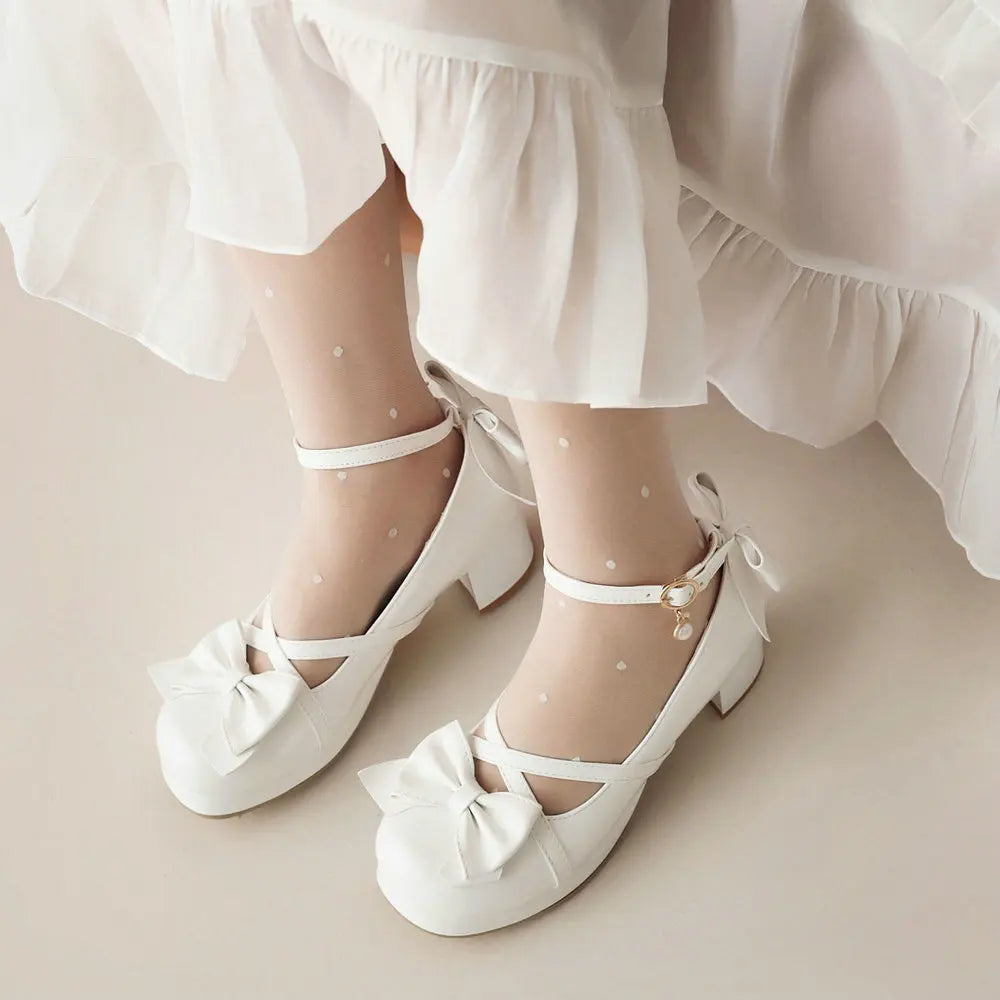 Ribbons Paneled White/Black Tights Bow with