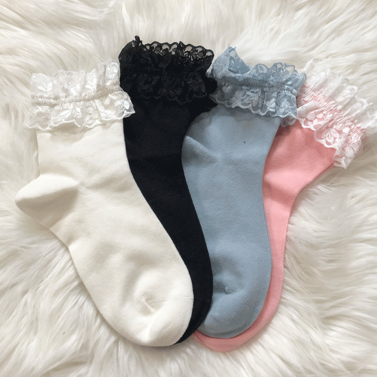 4 Cotton Lolita Lace-Trimmed Colors Socks