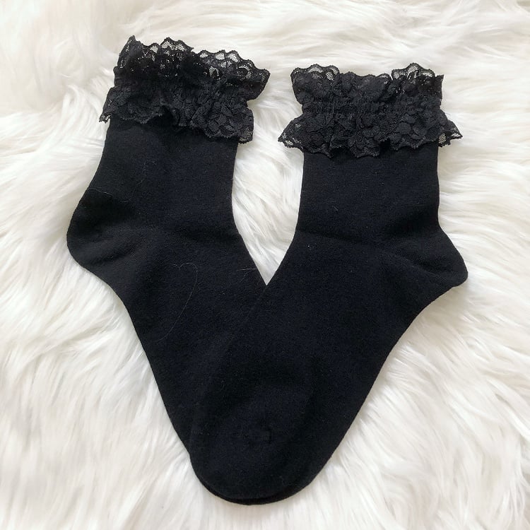 4 Colors Lace-Trimmed Lolita Cotton Socks
