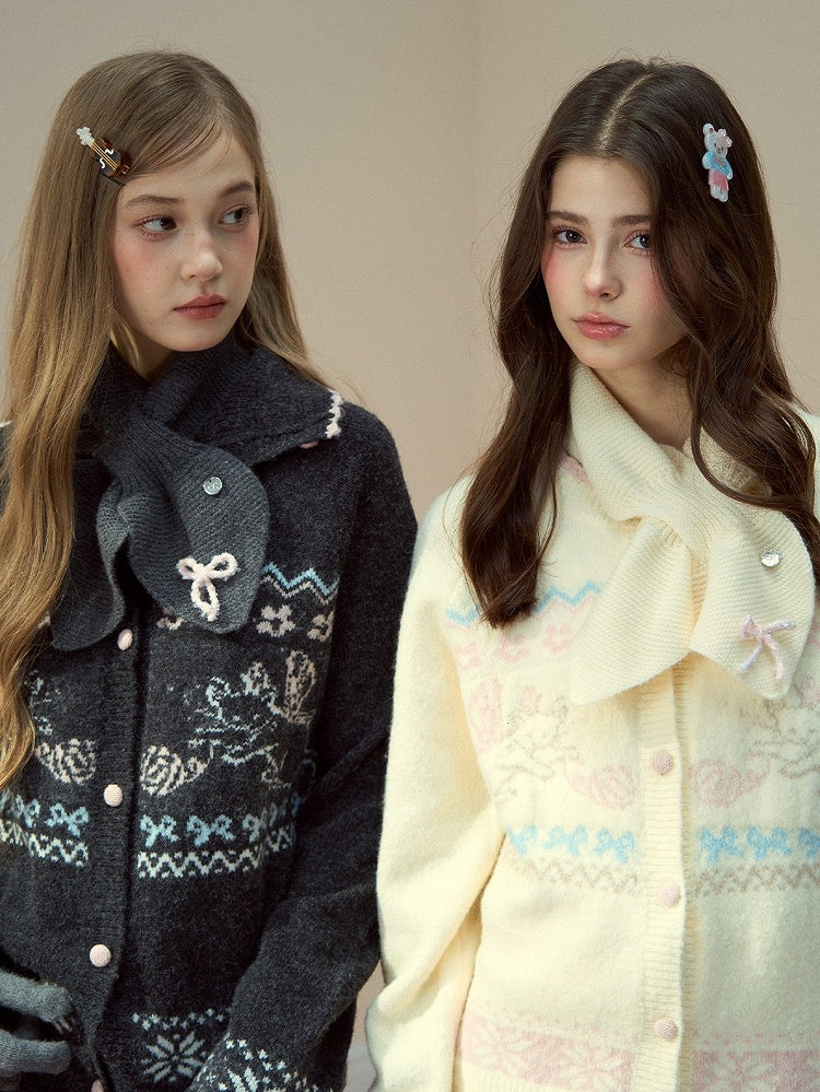 4 Wool Kawaii Details Style Colors Bowknot Scarf with
