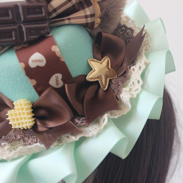 6 Color Options Chocolate Decorated Bowknot Details Plush Bear Ear Mini Hat
