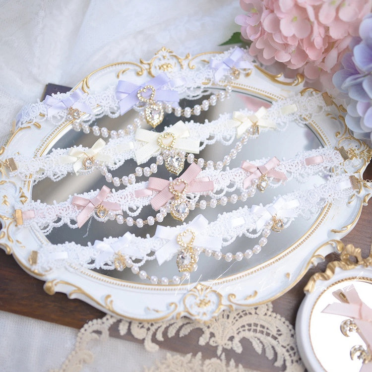 7 and Kei Jirai Beaded Chain Colors Charms Heart Choker Rhinestone Bow with