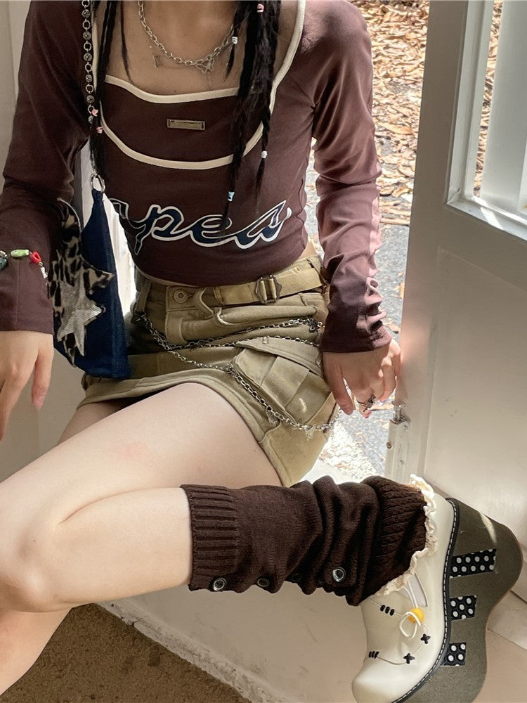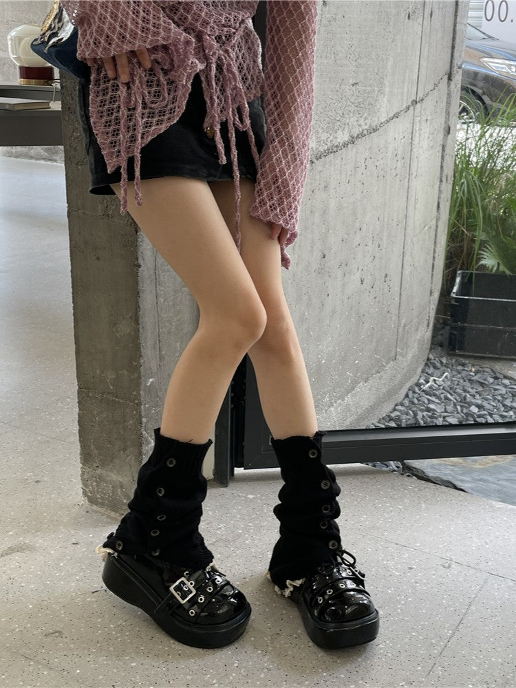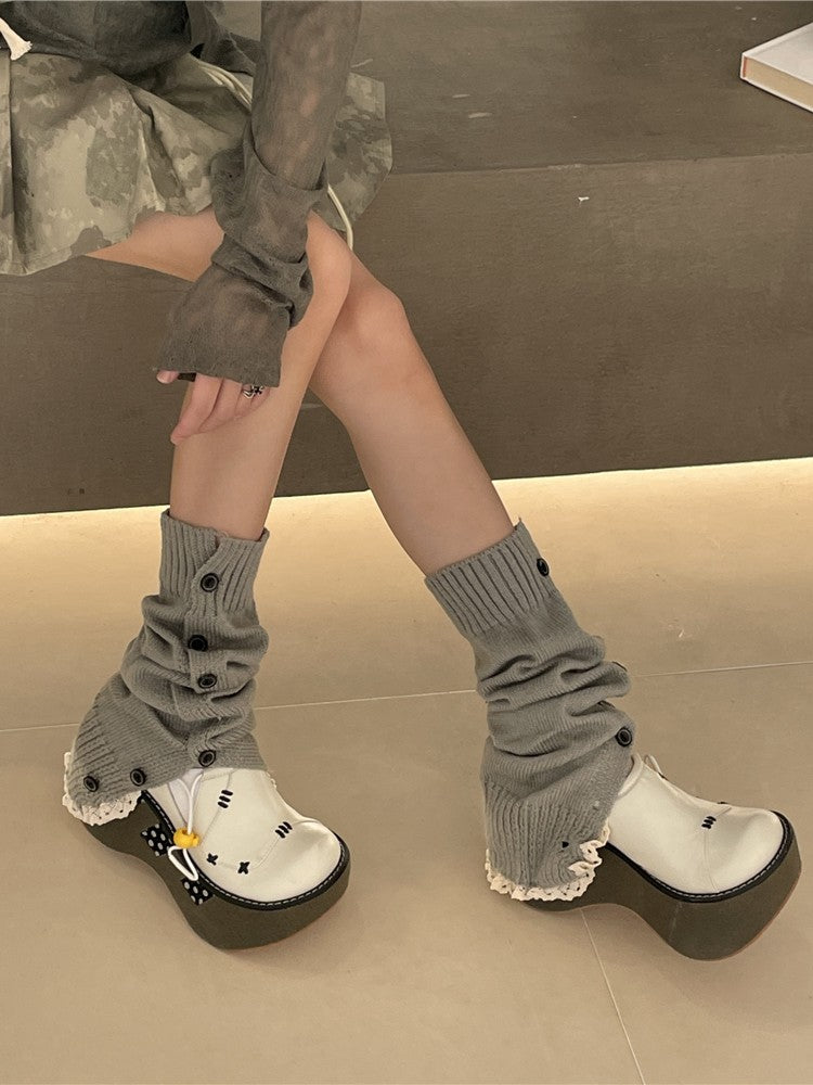 9 Color Options Lace Trim Knitted Leg Warmers with Buttons