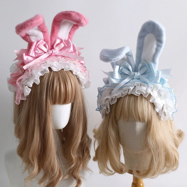 9 Colors Bunny Ear KC - Fluffy Rabbit Ears with Bow & Lace Trim