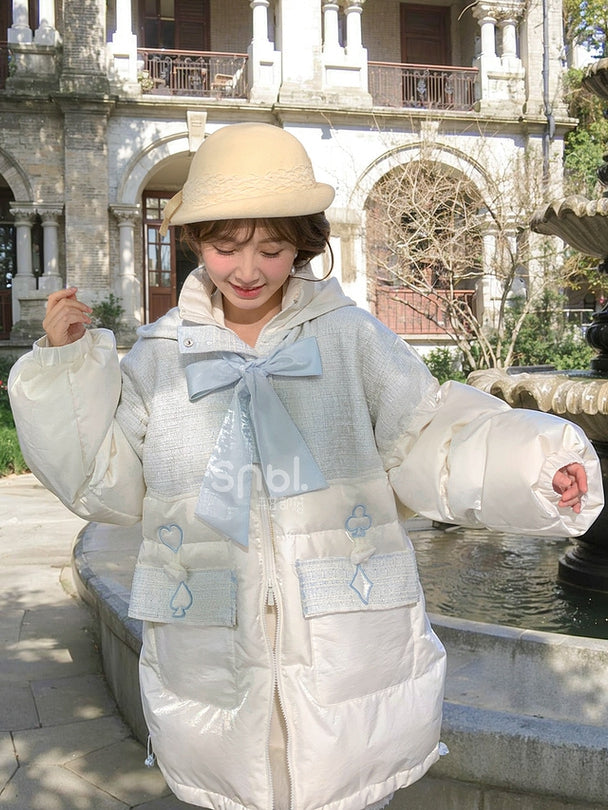 Alice in Wonderland Alice Tweed Patchwork White Hooded Down Jacket