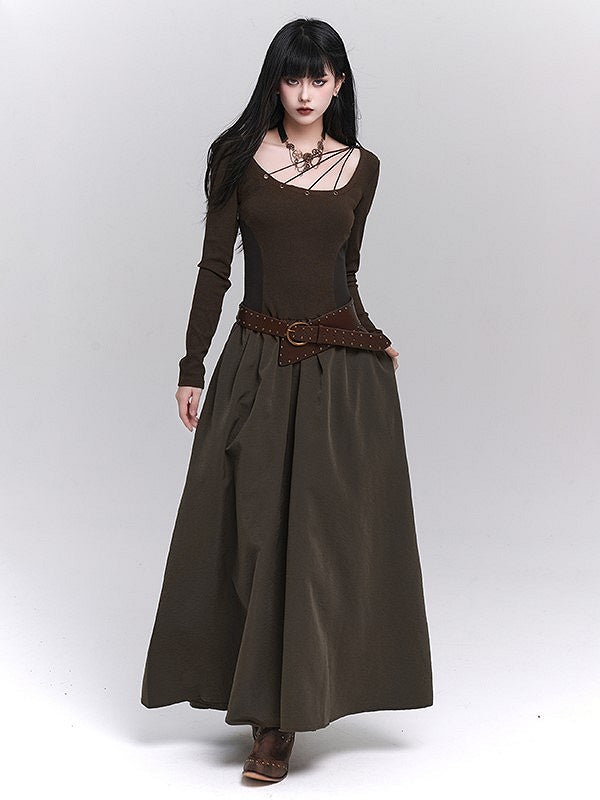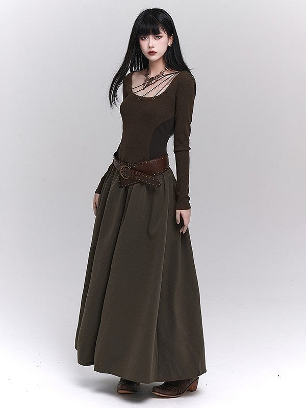 Alloy Brown Punk Buckle with Studded Waist Belt PU