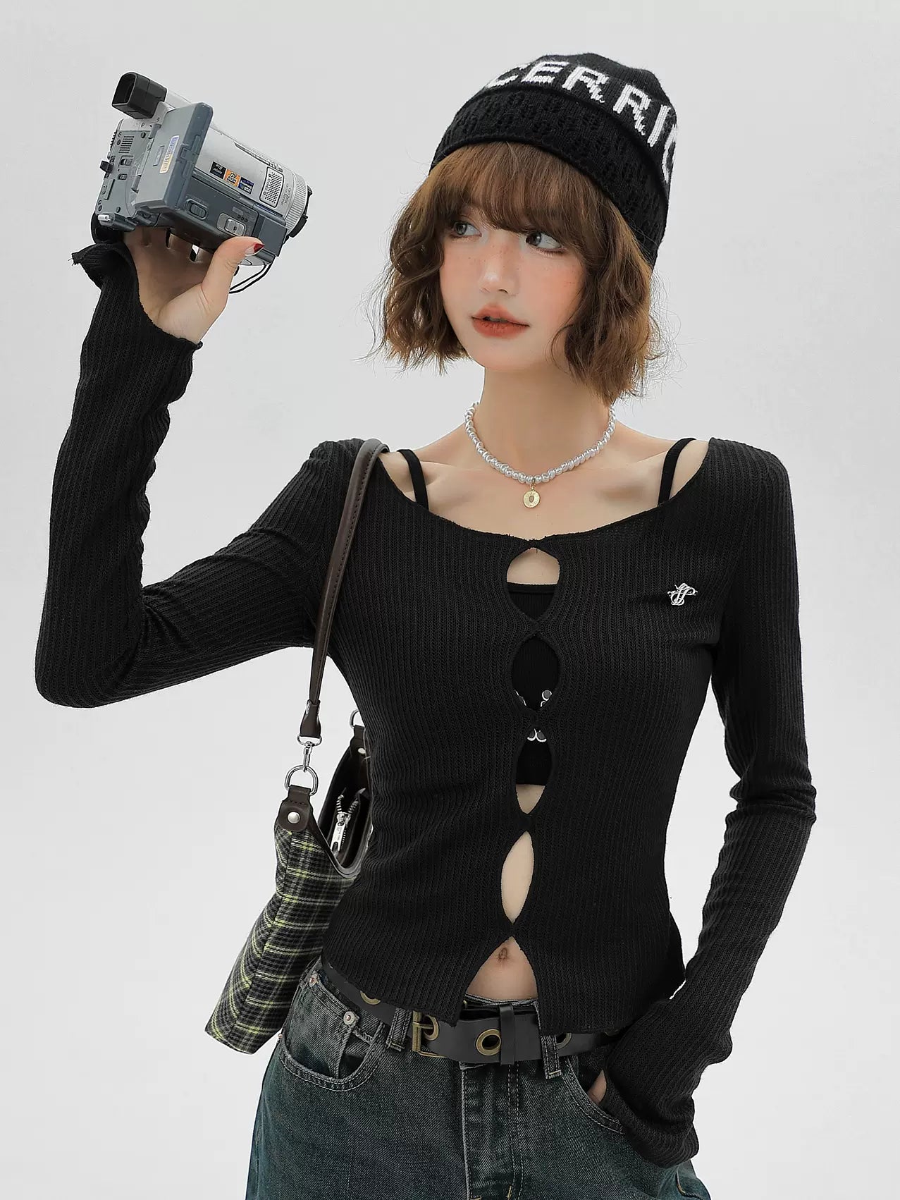 American Split Knit Camisole Top Short + Two-piece