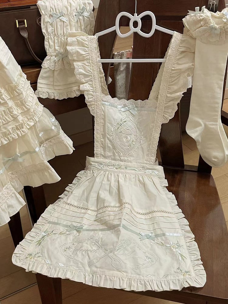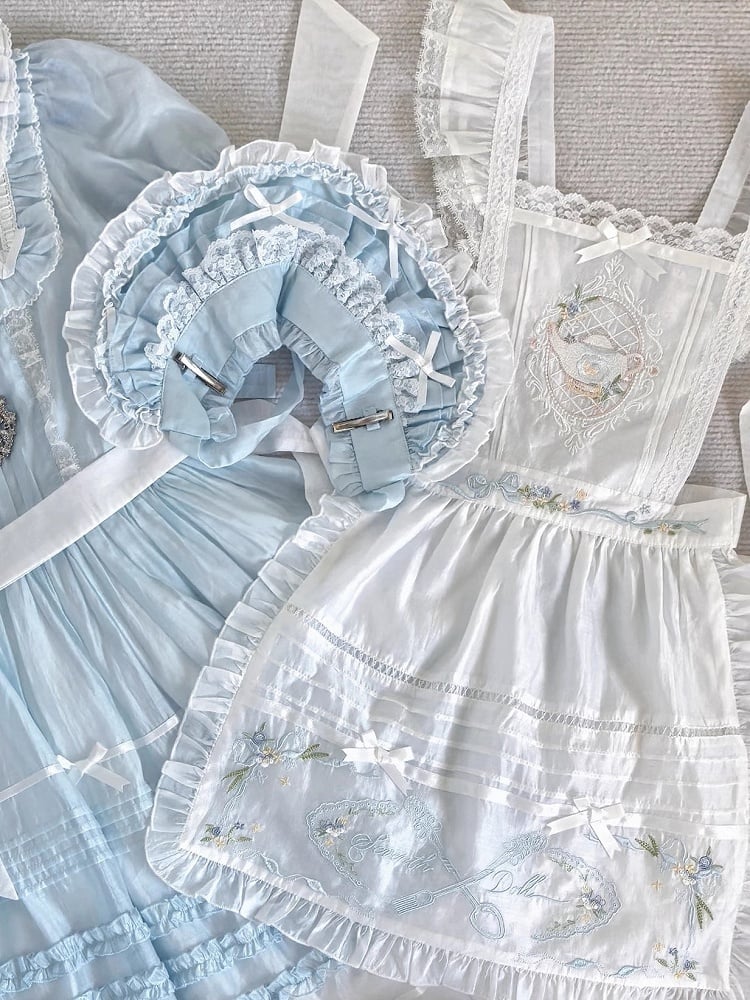 Blue and White Old School Lolita Fashion Dress Bowknot Detais JSK Set