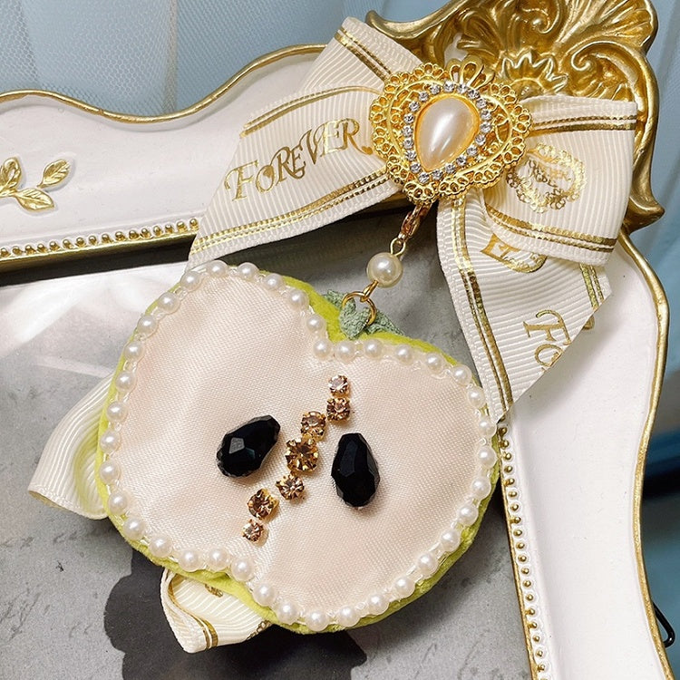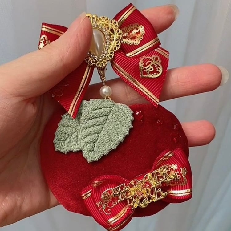 And Decorated Bowknot Apple Brooch Beaded Red/Green Rhinestone Charm
