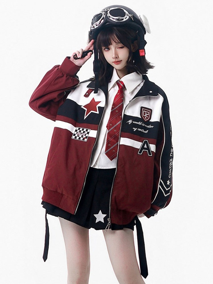 and Jacket with Red Embroidered Checked White Accents Moto Star
