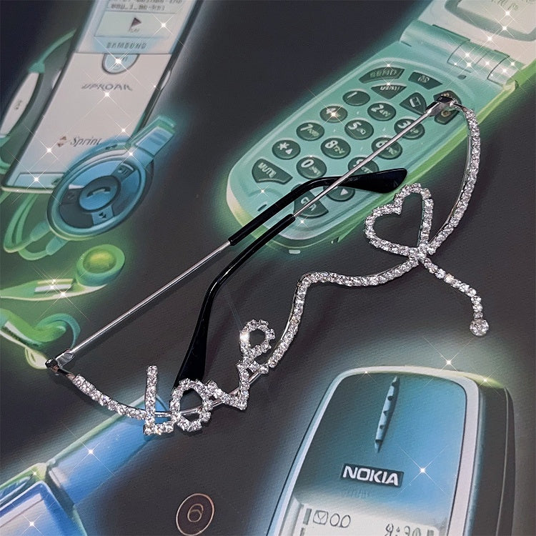 And Rhinestone Frame Eyeglasses Silver Heart Punk Letter Dcorated