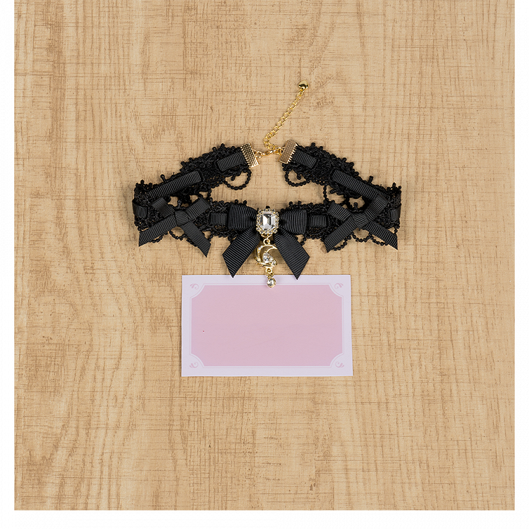 and Rhinestone Kei Crescent Bowknot Moon 5 Decor Jirai Star with Options Choker Color