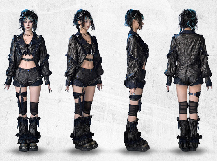 and Style Jacket with Lace Punk Studs Rock Short Y3K