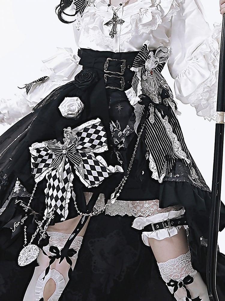 Black and White Old School Lolita Fashion Dress Bowknot Lolita JSK Set