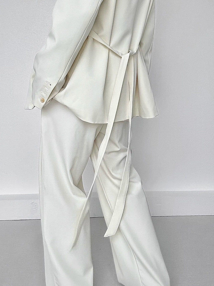 ● Button Closure and Zip Fly / Slant Front Pockets / Wide-leg Cut