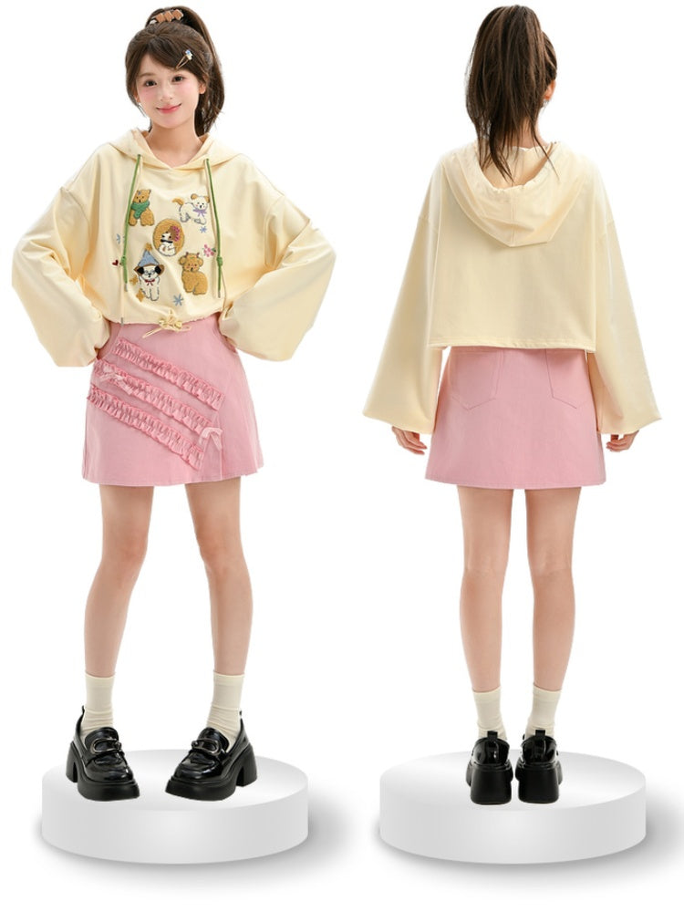 Apricot Plush Puppy Drawstring Waist Hoodie