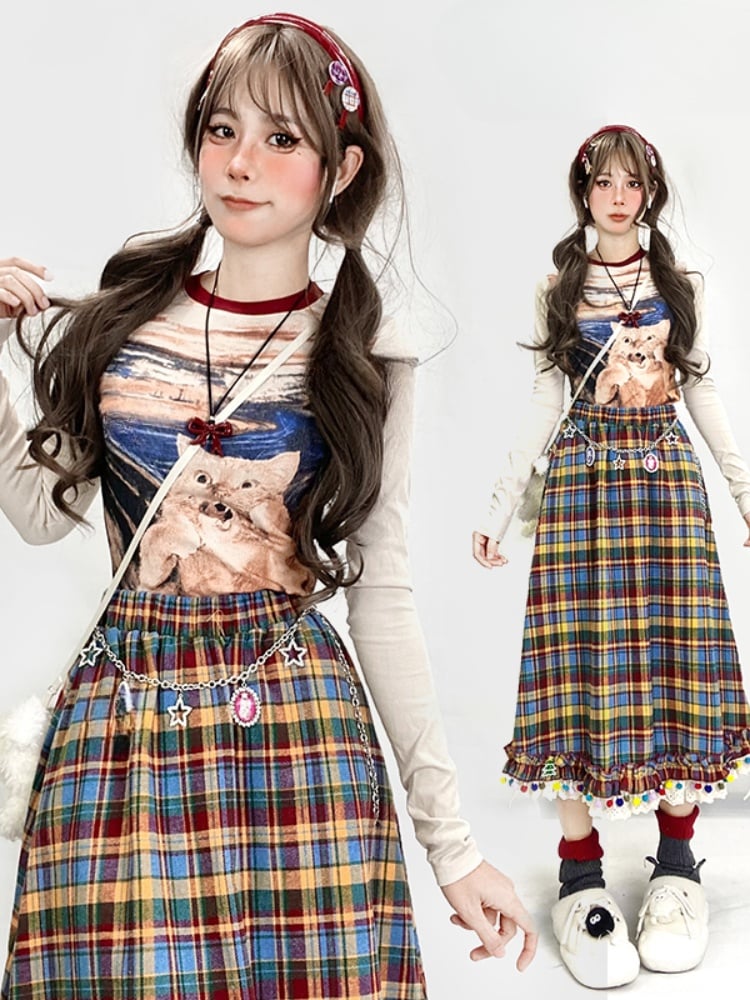 This cute round neck top features a cat oil painting design, adding a touch of charm to your outfit. Its slim-fitting shape emphasizes your figure, making you look glamorous. Perfect for adding a pop of personality to your everyday wardrobe.