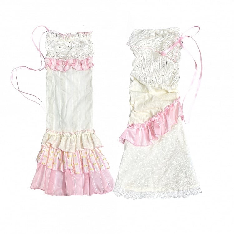 Asymmetrical Warmers Ruffles Leg and Pink with Tiered Lace