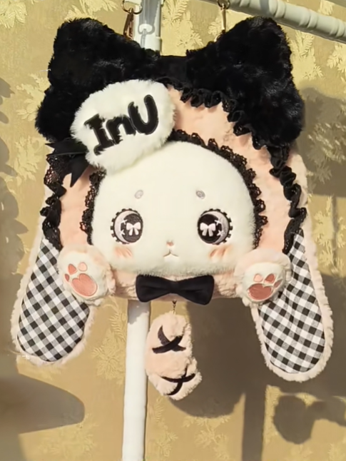 Sweet Lolita Black Plaid Lop Ear Bunny Pink Plush Bag