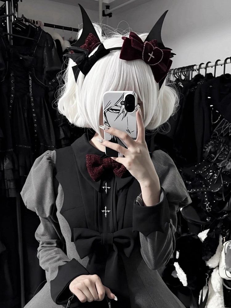 Black and White Old School Lolita Fashion Dress Bowknot Lolita JSK Set