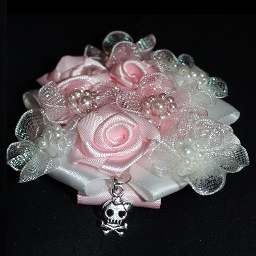 Beaded Design PinkWhite Hairclips Skeleton Charm Floral Wing And Decorated