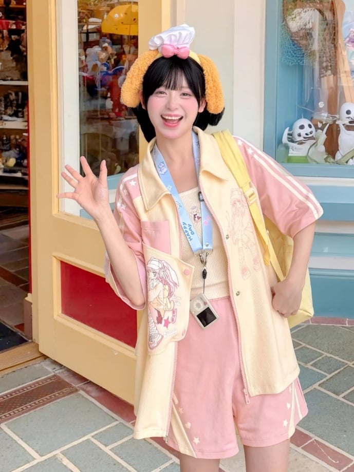 Beige and Pink Colorblock Design Shirt Anime Print Zip Bittersweet Closure Y2K