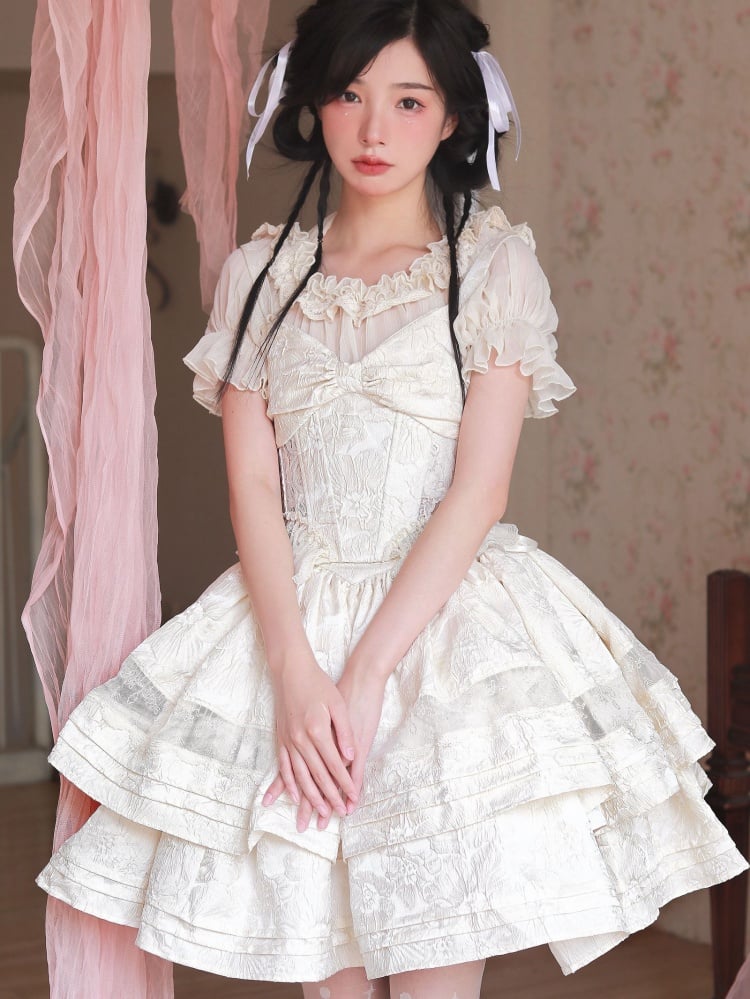 Pink and White Old School Lolita Fashion Dress Bowknot Detais Lolita JSK Set