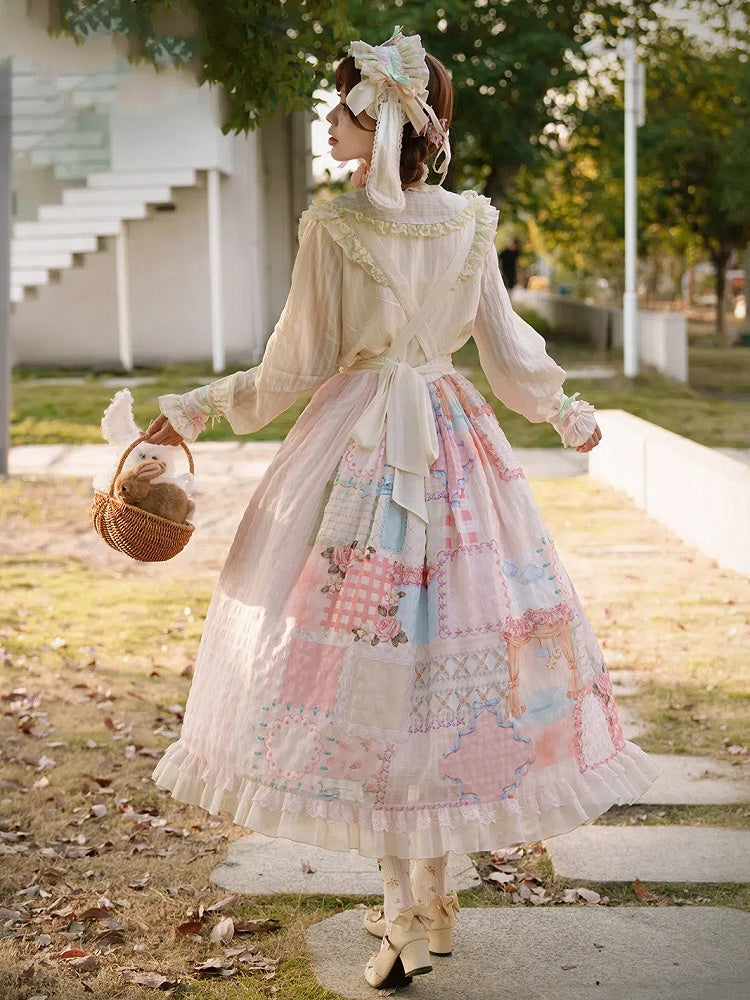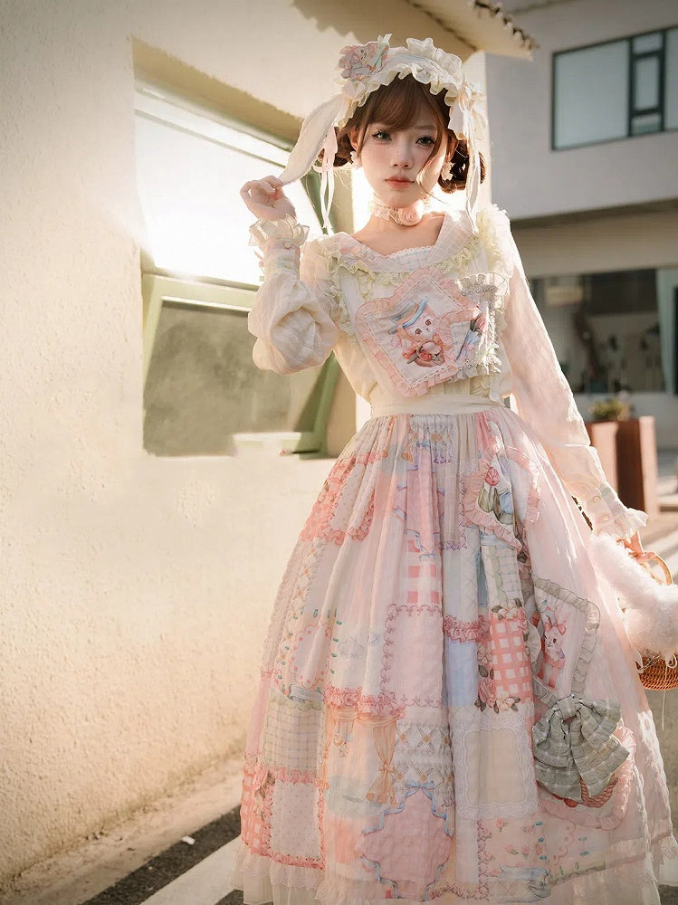 Pink and White Old School Lolita Fashion Dress Bowknot Detais Lolita JSK Set