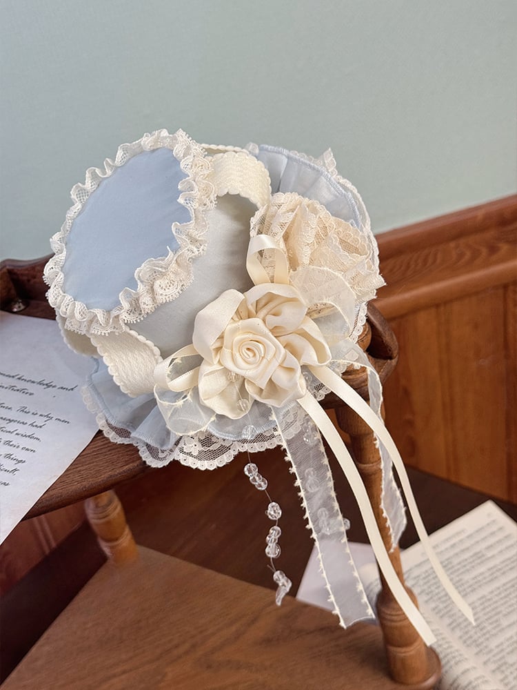 Blue and White Old School Lolita Fashion Dress Bowknot Detais JSK Set