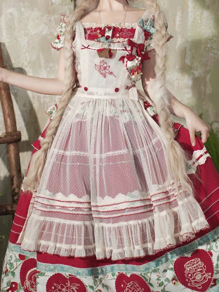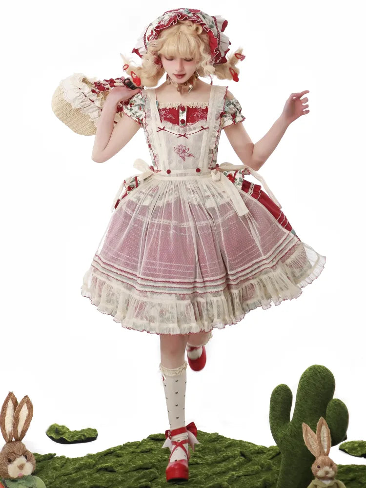 Pink and White Old School Lolita Fashion Dress Bowknot Detais Lolita JSK Set