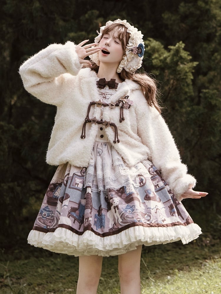 Plush Beige Sweet Lolita Coat with Star-Accented Drawstring Toggles