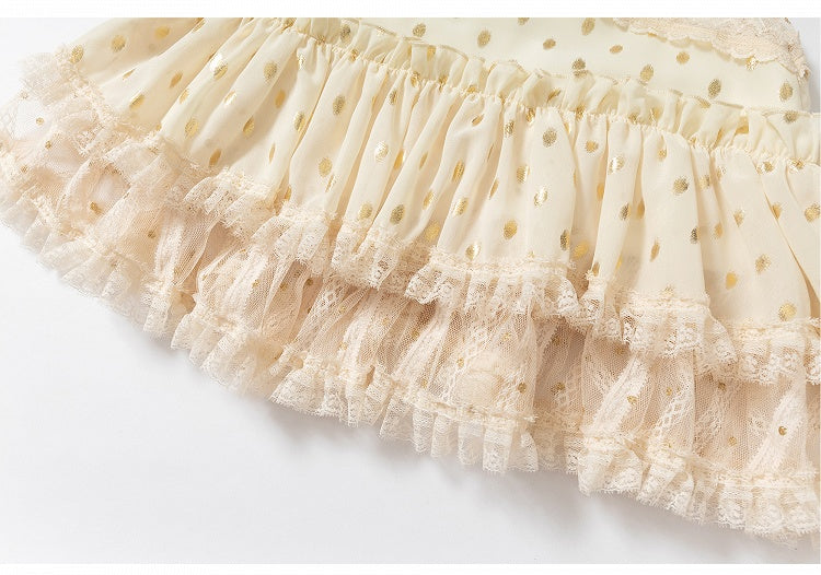 Beige/Black Halter Neck Lace Patches Waist Polka-dot Vintage Strapless Dress