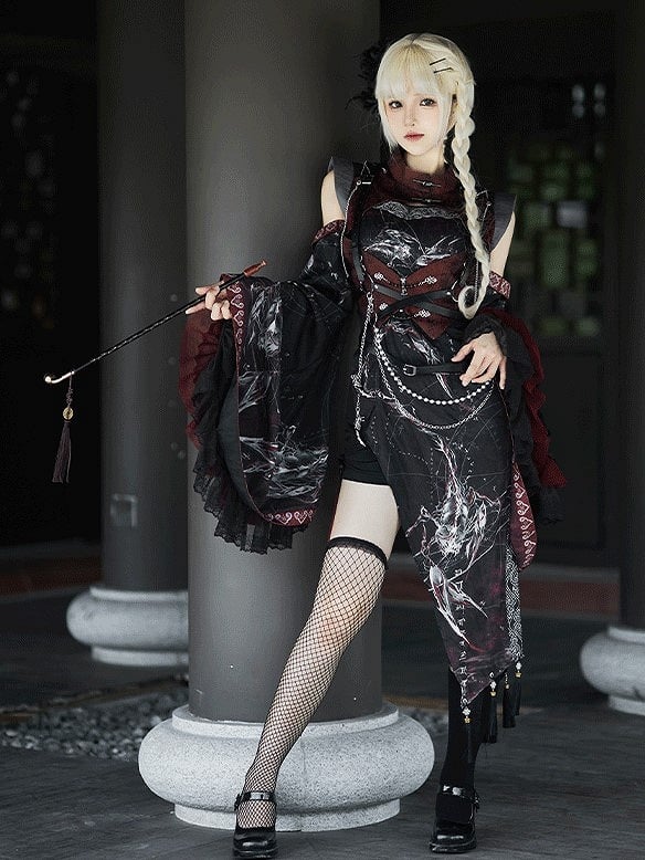 Black and White Old School Lolita Fashion Dress Bowknot Lolita JSK Set