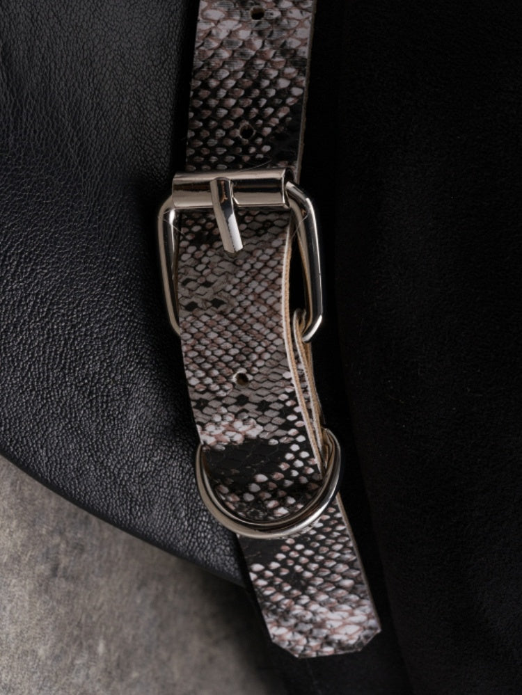 Black Gothic Snakeskin Pattern Buckle Design Beret Hat