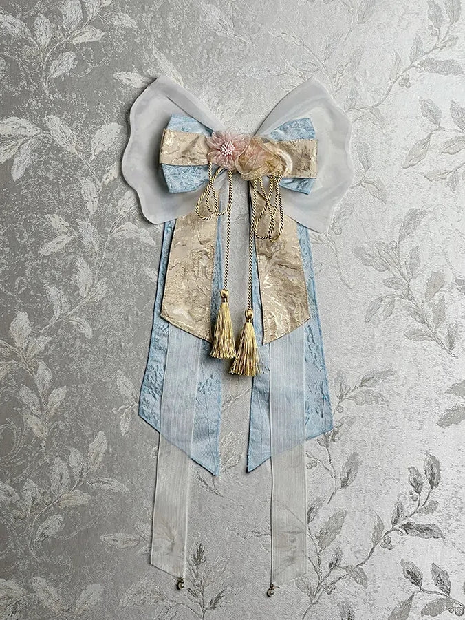 Blue and White Old School Lolita Fashion Dress Bowknot Detais JSK Set