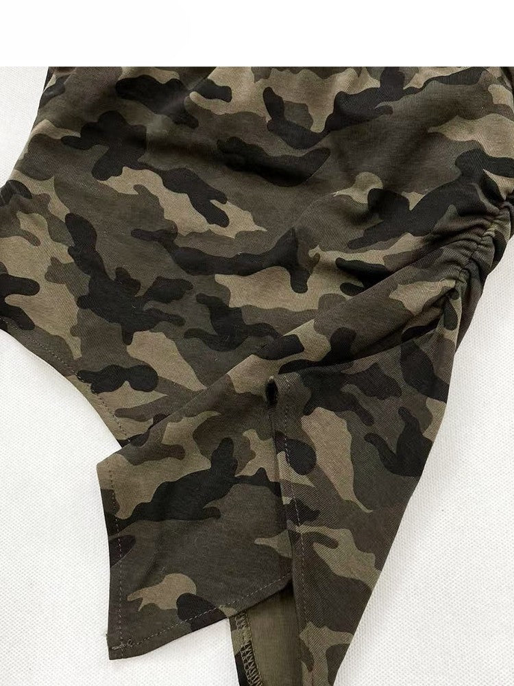 Army Green Bittersweet Camo Pattern Self-tie Strap Asymmetrical Hem Tube Top