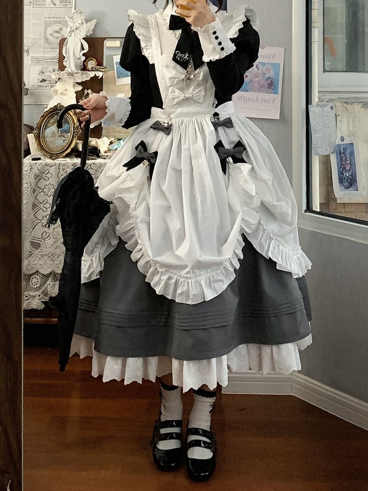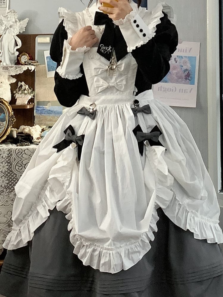 Decorated Lolita Multi-Layer Calf White/Black Bow Trim Lace Socks