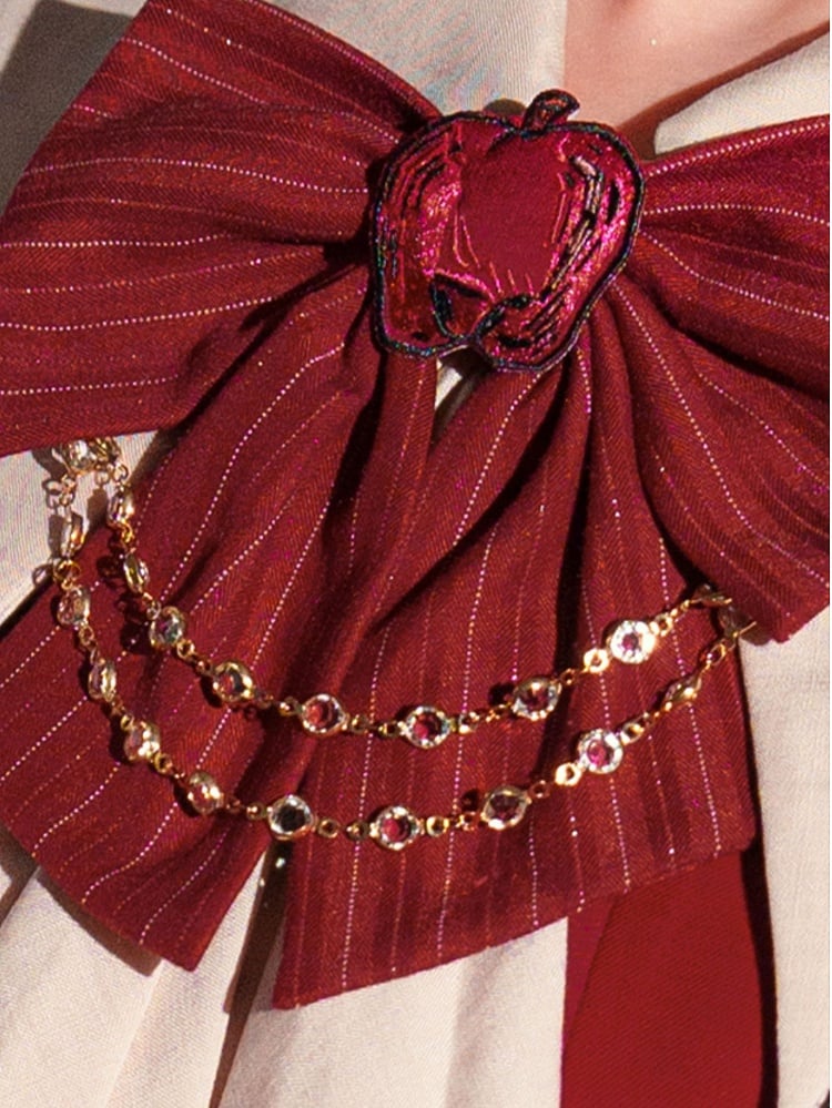 Black and Red Ouji Fashion Preppy Style Full Set-Beige Shirt + Red Waistcoat + High Waist Knickerbockers Shorts + Shawl+ Accessories