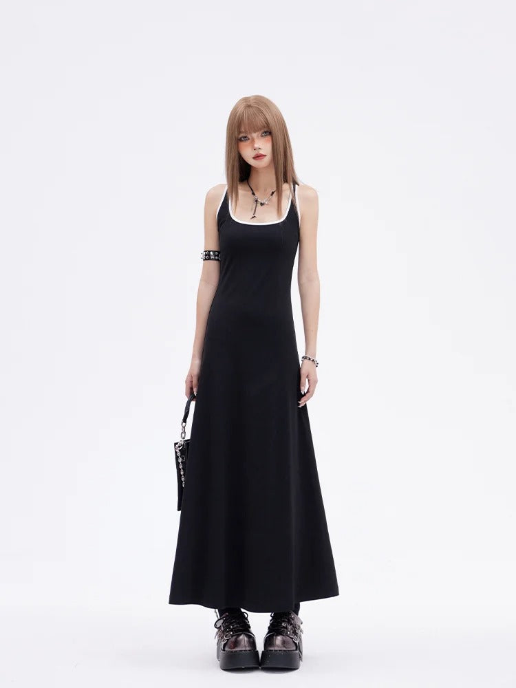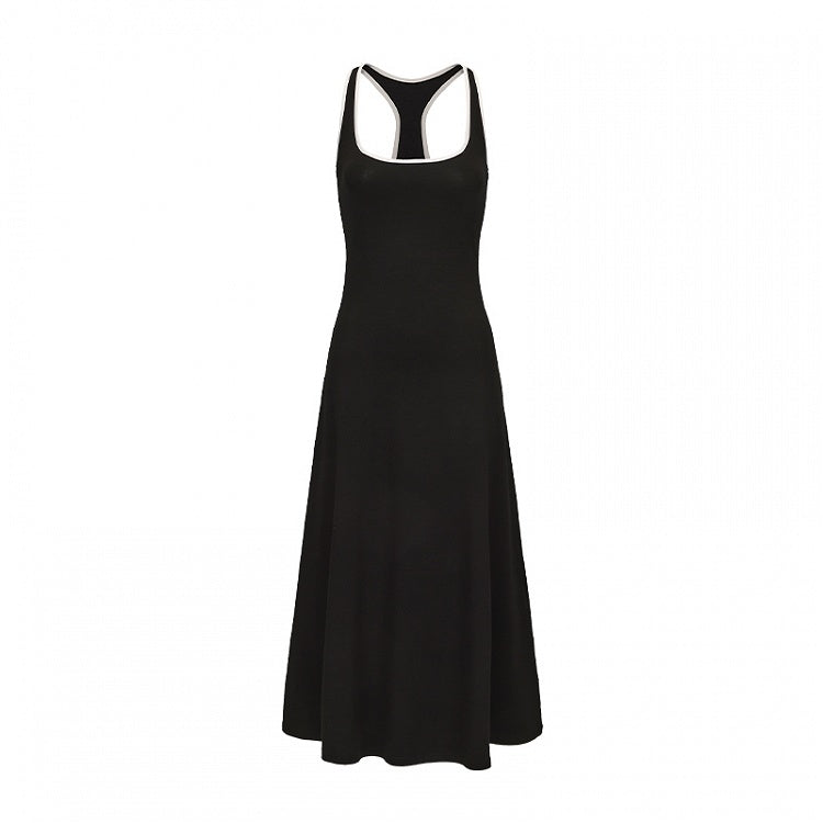 Black Backless Sleeveless Dress Slim-Fitting Knitted
