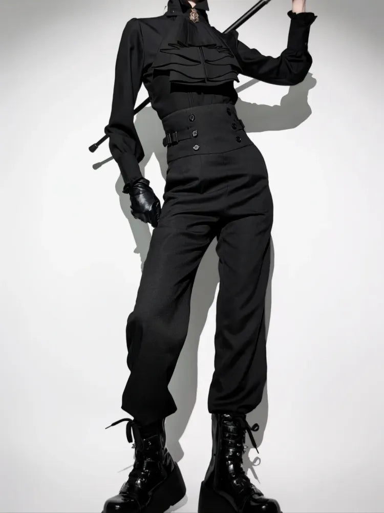 Black Corset Belt High Waist Ouji Fashion Lolita Pants