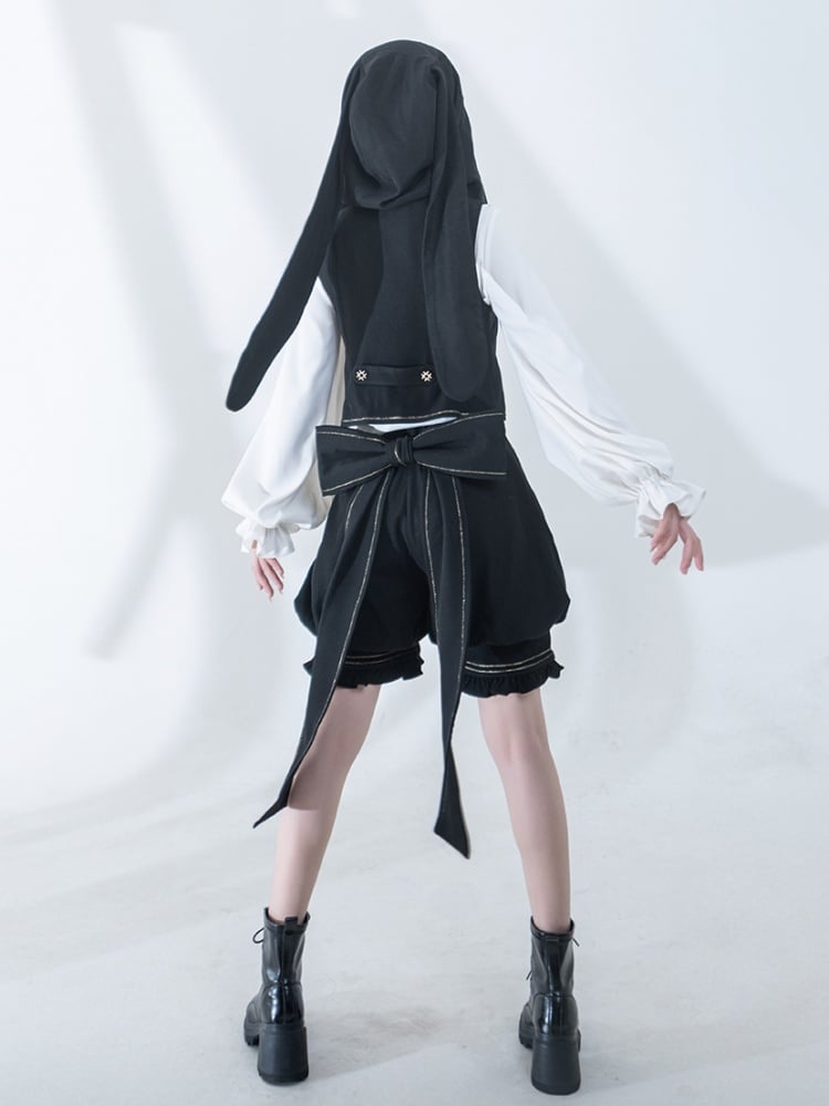 Black and White Old School Lolita Fashion Dress Bowknot Lolita JSK Set