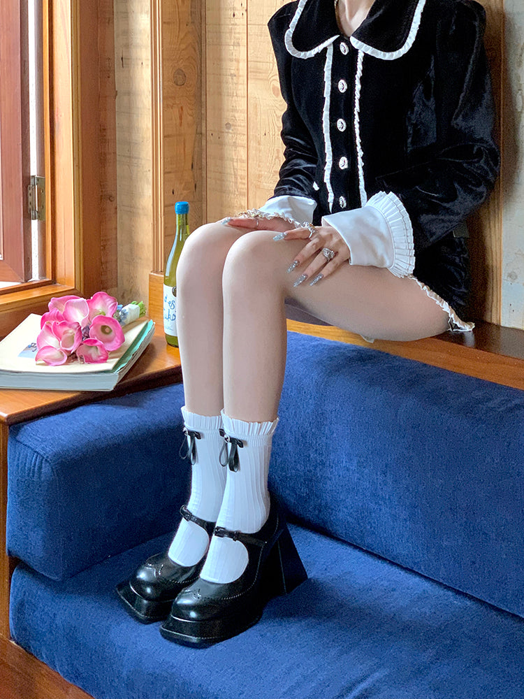 Black / White Balletcore Bow Accent Mid-Calf Socks