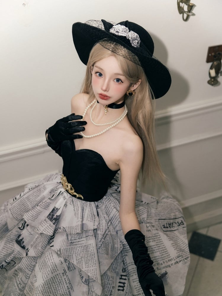 Black and White Old School Lolita Fashion Dress Bowknot Lolita JSK Set